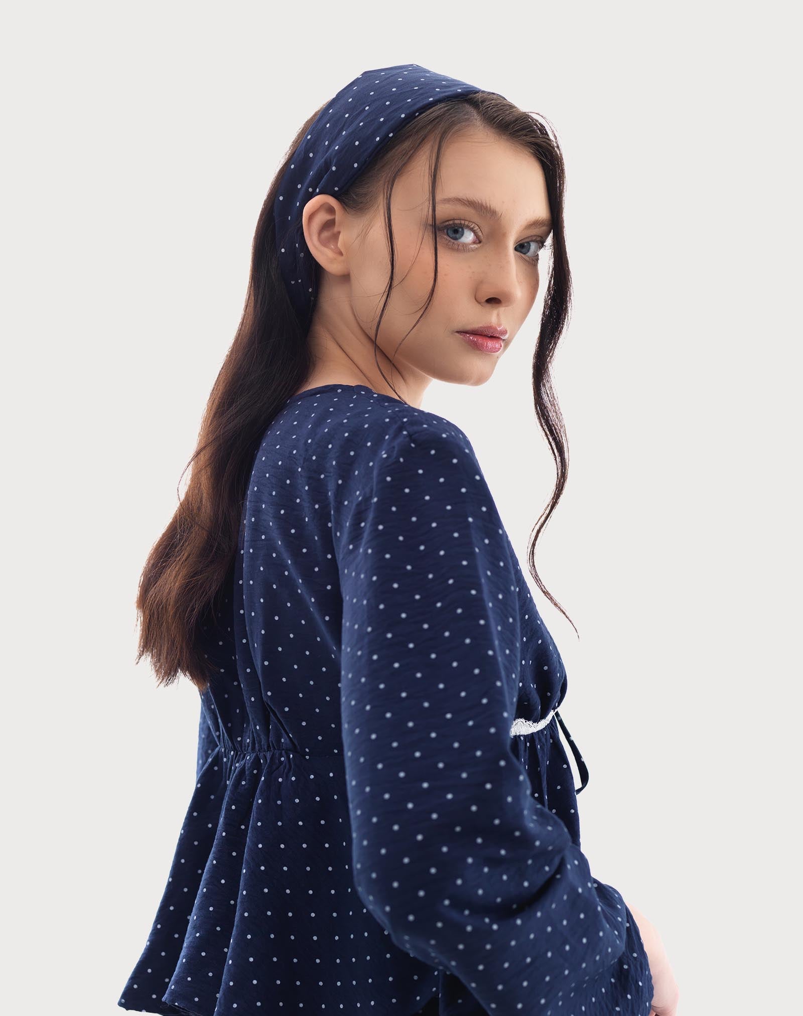 Lấy cảm hứng từ phong cách retro chấm bi, Bleu mang đến cảm giác trẻ trung và phóng khoáng với tông xanh denim cùng dáng áo buộc dây cá tính.