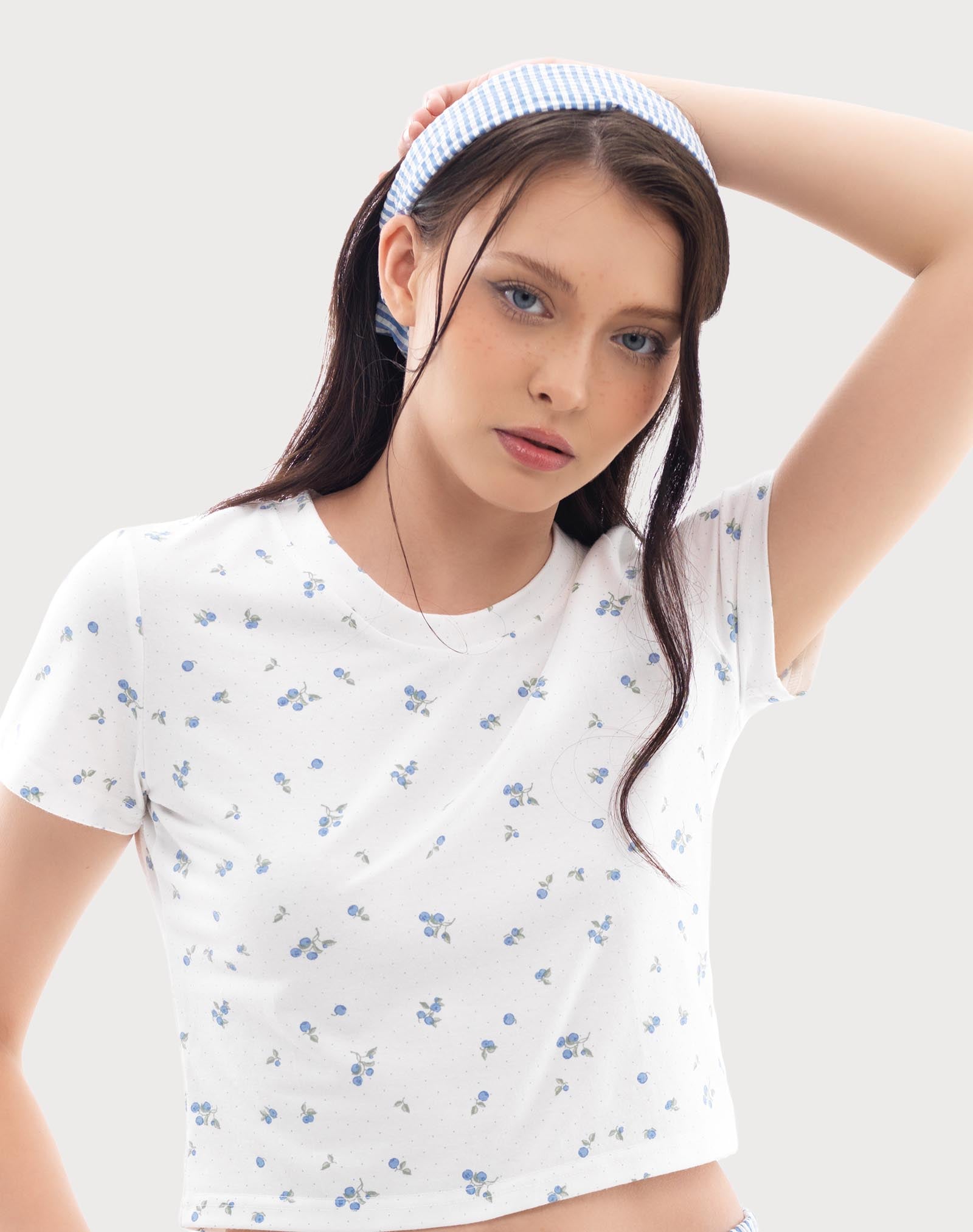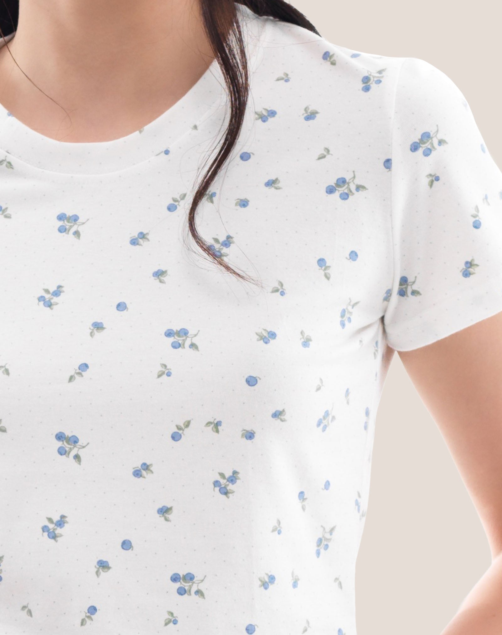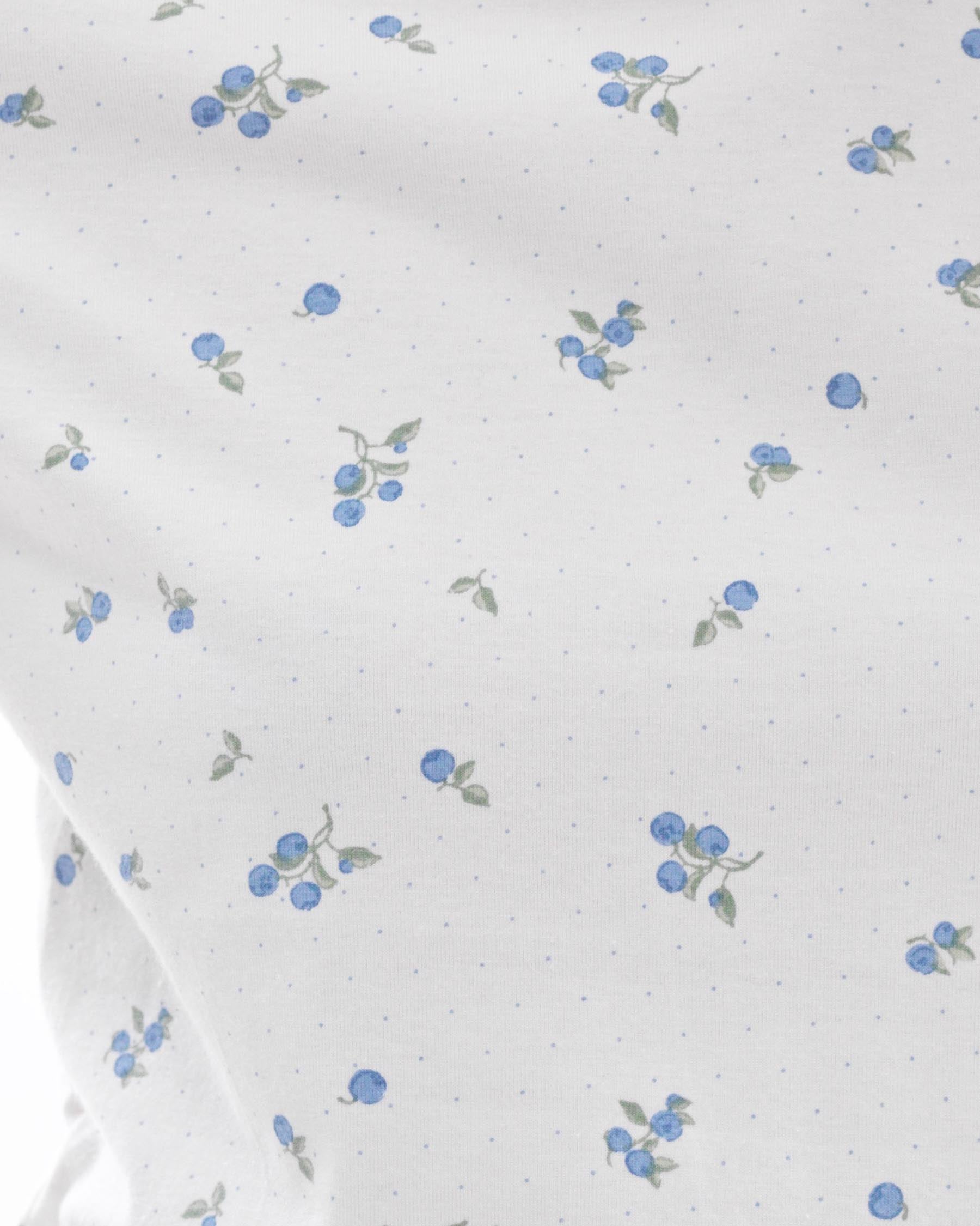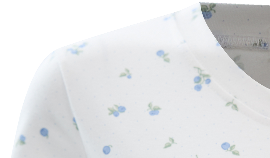 - Chất vải: Thun cotton 4 chiều mềm mại, thoáng mát, in họa tiết trái việt quất tươi tắn. Chất vải êm dịu, thoải mái cả ngày dài.
