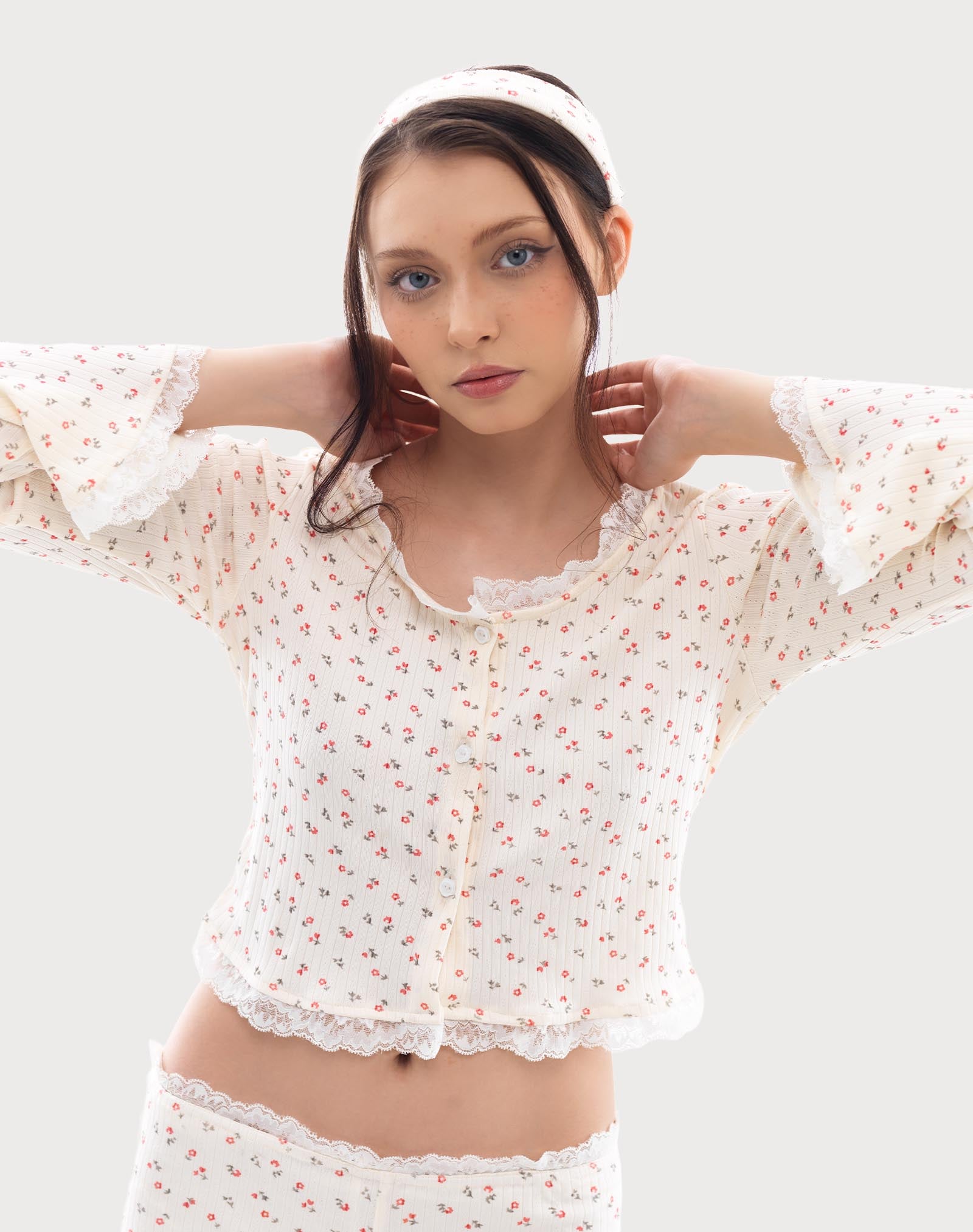 Fleur lấy cảm hứng từ họa tiết hoa nhí với chất thun thông hơi mềm mại, dáng áo cardigan dài tay cùng đường viền ren nữ tính. Thiết kế nhẹ nhàng, thoải mái, dễ phối cho những ngày muốn “làm mới” phong cách.
