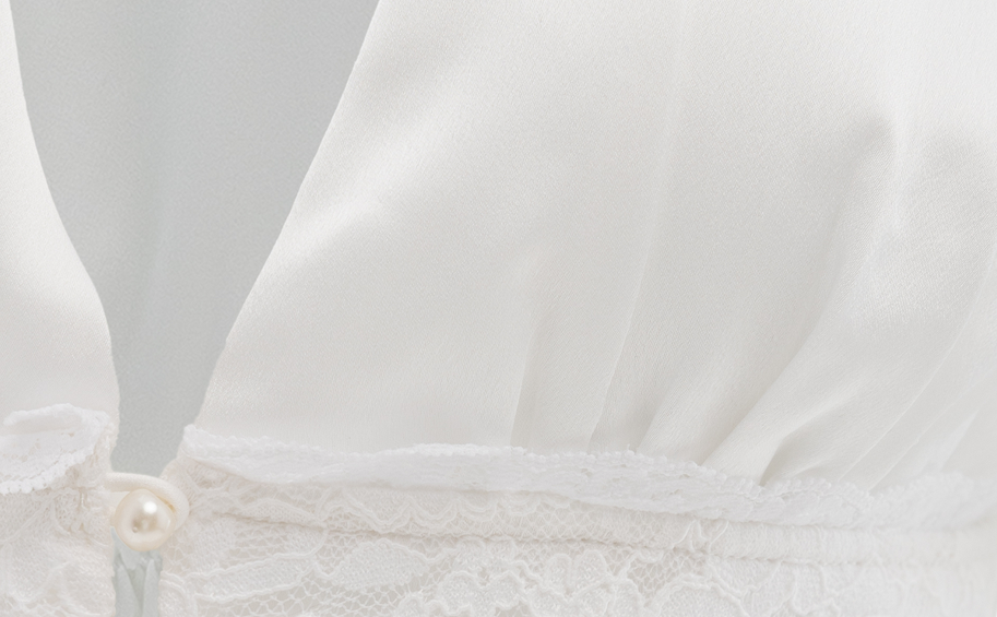 Không giặt khô (dry clean) - vì dung môi mạnh có thể làm lụa satin bị mất độ bóng tự nhiên, ren co giãn bị giòn, hoặc gây xơ vải/nút bị hư.