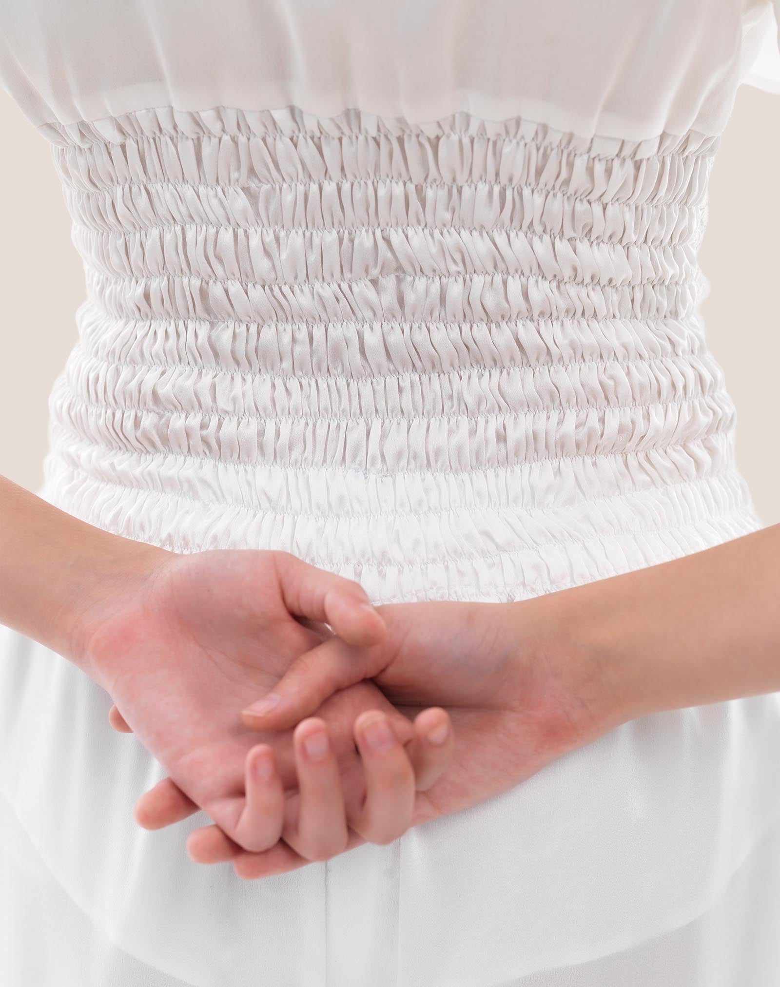 Lấy cảm hứng từ vẻ đẹp thanh lịch tối giản, Séna nổi bật với chất lụa trắng mềm mại, chi tiết smocking eo phối ren và hàng nút ngọc trai tinh tế. Thiết kế nhẹ nhàng, tôn dáng, phù hợp cho cả ở nhà lẫn dạo phố.